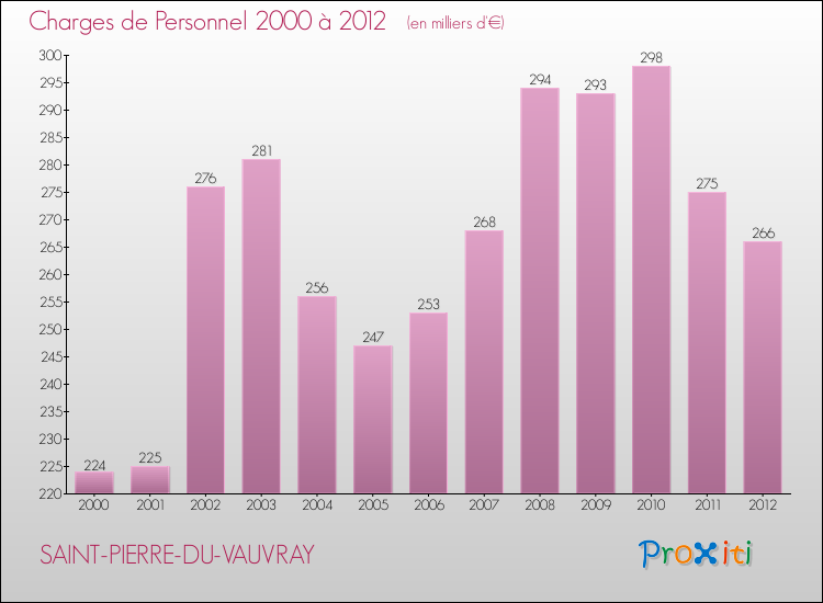 En 2012, les charges de fonctionnement de la commune de Saint-Pierre-du-Vauvray étaient de : 553 000 € décomposées comme suit :