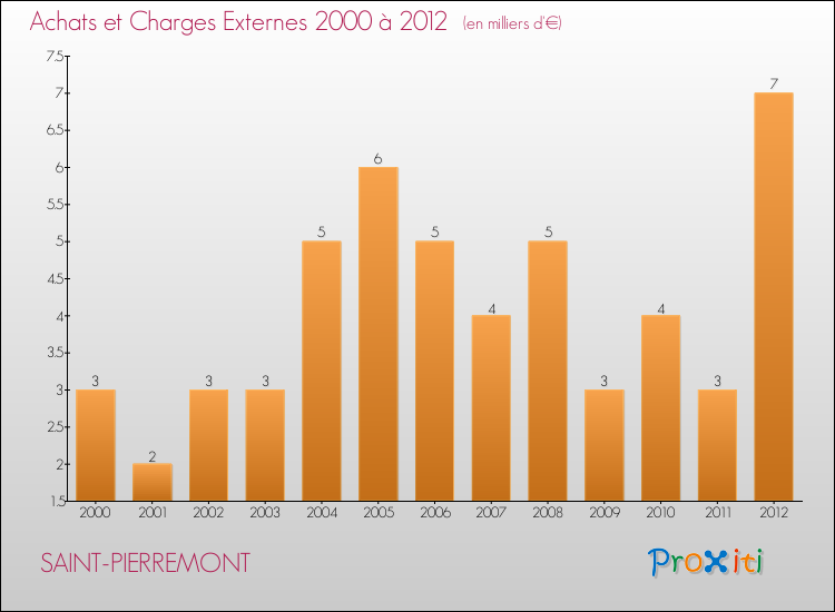 En 2012, les charges de fonctionnement de la commune de Saint-Pierremont étaient de : 31 000 € décomposées comme suit :