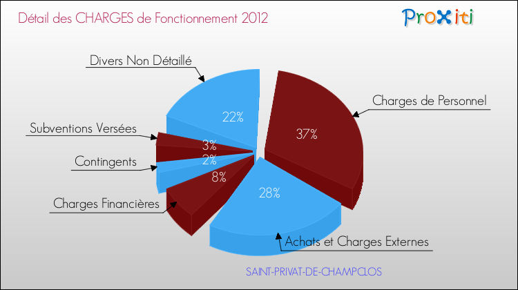 En 2012, les charges de fonctionnement de la commune de Saint-Privat-de-Champclos étaient de : 292 000 € décomposées comme suit :