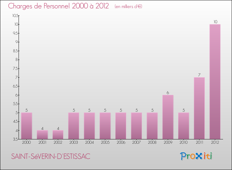 En 2012, les charges de fonctionnement de la commune de Saint-Séverin-d'Estissac étaient de : 38 000 € décomposées comme suit :