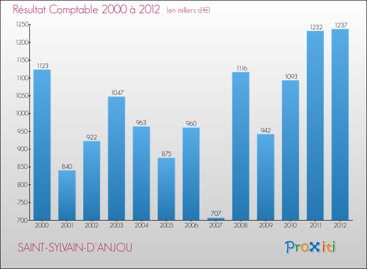 Le résultat comptable de la commune de Saint-Sylvain-d'Anjou s'établissait ainsi à : + 1 237 000 € fin 2012.