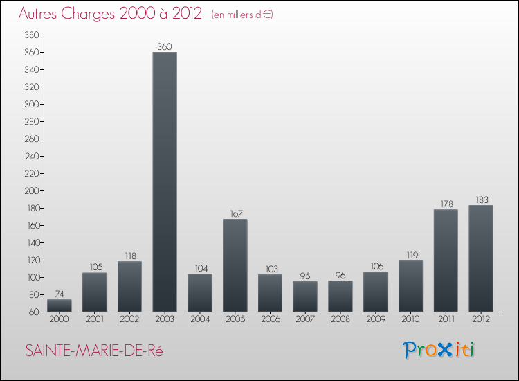 En 2012, les charges de fonctionnement de la commune de Sainte-Marie-de-Ré étaient de : 2 623 000 € décomposées comme suit :