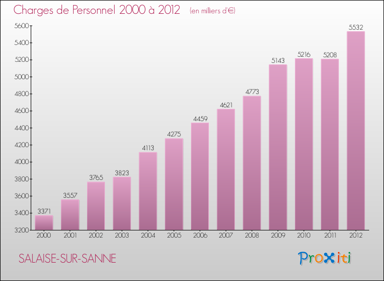 En 2012, le budget de fonctionnement de la commune de Salaise-sur-Sanne se montait à : 12 804 000 € décomposé comme suit :