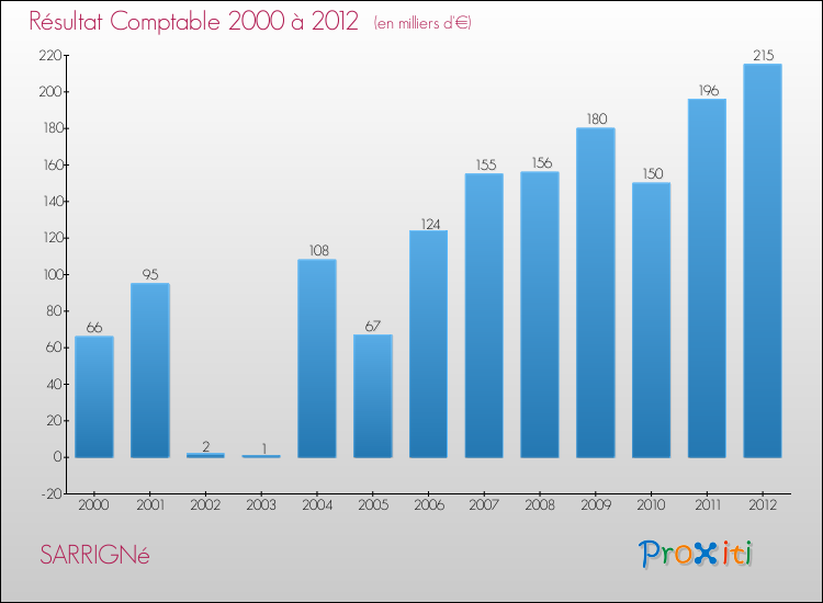 Le résultat comptable de la commune de Sarrigné s'établissait ainsi à : + 215 000 € fin 2012.