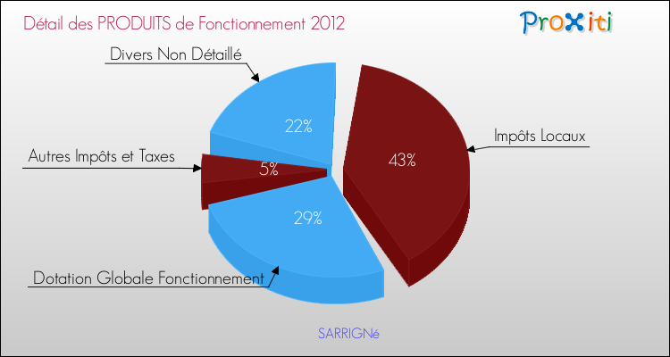 En 2012, le budget de fonctionnement de la commune de Sarrigné se montait à : 588 000 € décomposé comme suit :