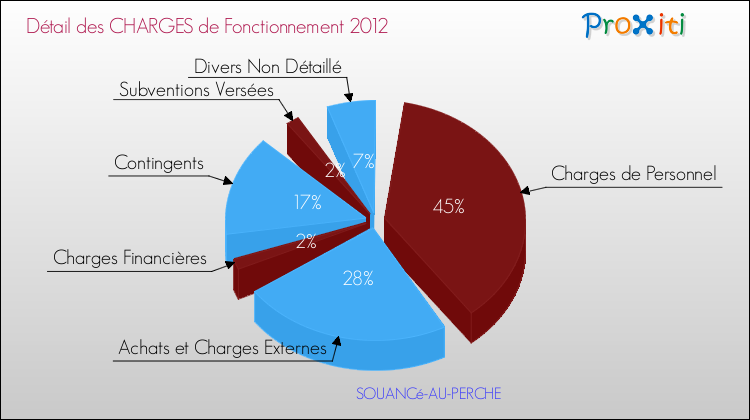 En 2012, les charges de fonctionnement de la commune de Souancé-au-Perche étaient de : 347 000 € décomposées comme suit :