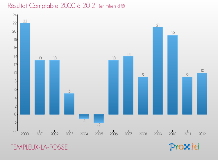 Le résultat comptable de la commune de Templeux-la-Fosse s'établissait ainsi à : + 10 000 € fin 2012.