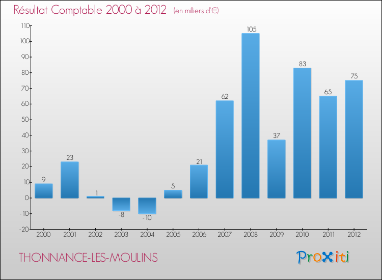 Le résultat comptable de la commune de Thonnance-les-Moulins s'établissait ainsi à : + 75 000 € fin 2012.