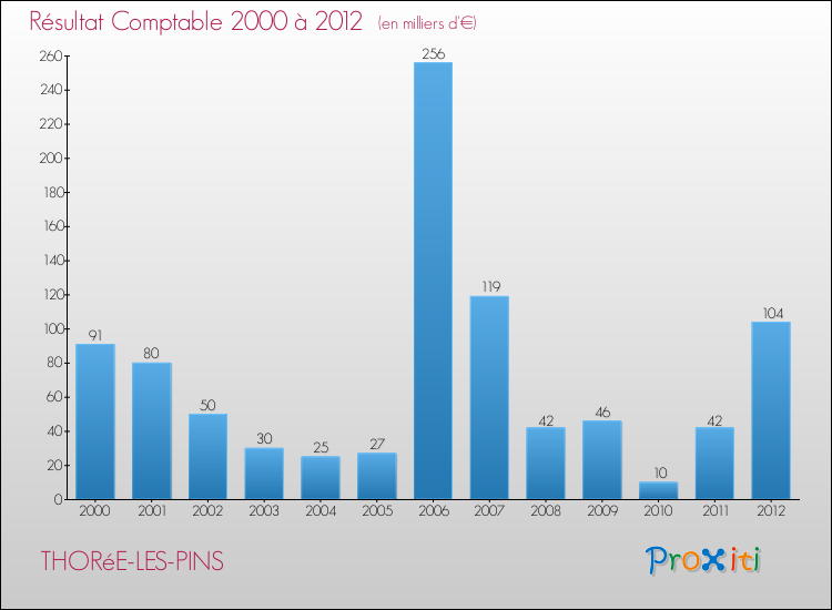 Le résultat comptable de la commune de Thorée-les-Pins s'établissait ainsi à : + 104 000 € fin 2012.