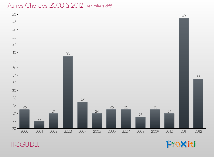 En 2012, les charges de fonctionnement de la commune de Tréguidel étaient de : 232 000 € décomposées comme suit :
