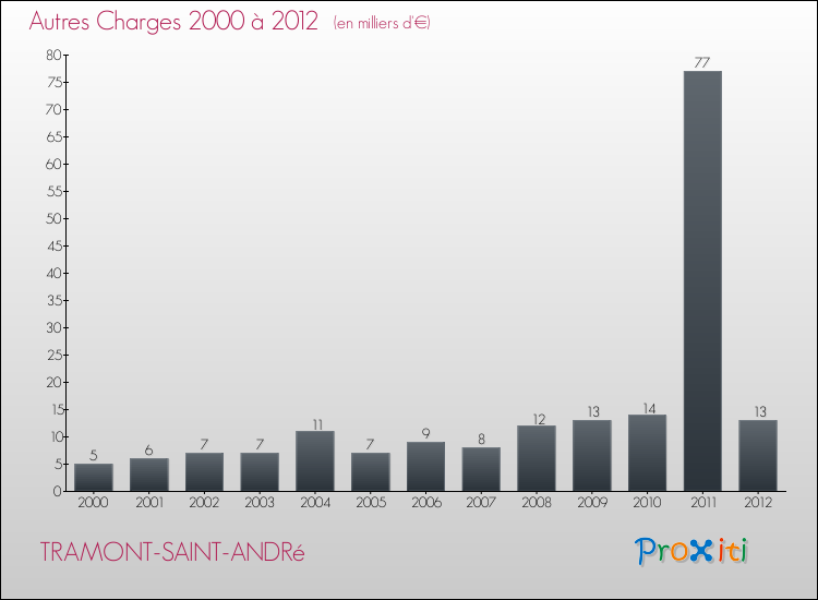 En 2012, les charges de fonctionnement de la commune de Tramont-Saint-André étaient de : 61 000 € décomposées comme suit :