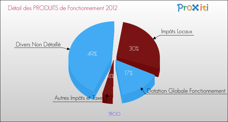 En 2012, le budget de fonctionnement de la commune de Troo se montait à : 508 000 € décomposé comme suit :