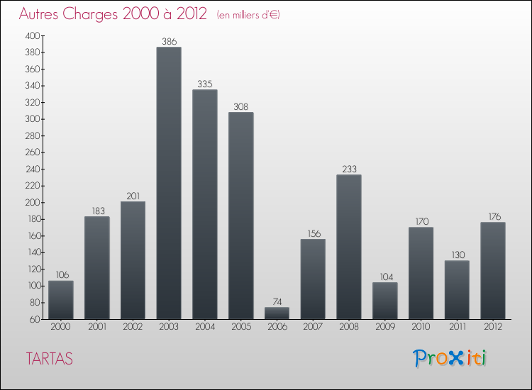 En 2012, le budget de fonctionnement de la commune de Tartas se montait à : 3 564 000 € décomposé comme suit :