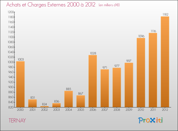 En 2012, les charges de fonctionnement de la commune de Ternay étaient de : 3 607 000 € décomposées comme suit :