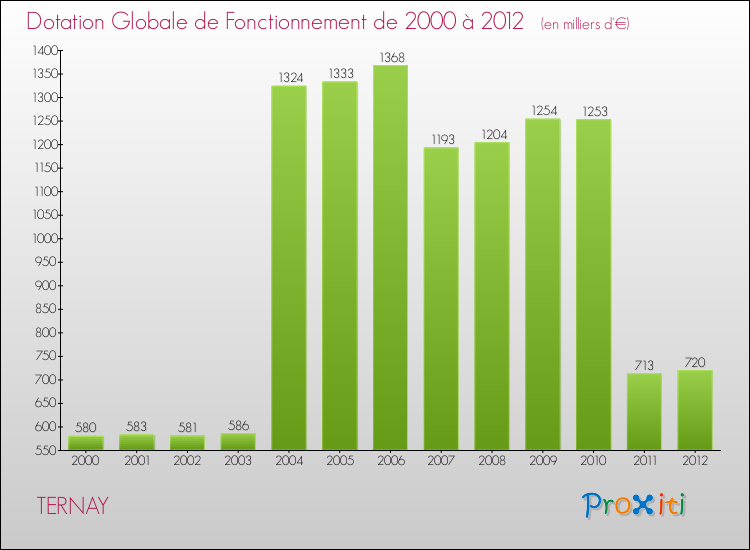 En 2012, le budget de fonctionnement de la commune de Ternay se montait à : 4 491 000 € décomposé comme suit :