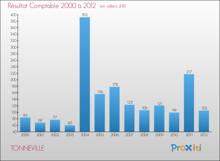 Le résultat comptable de la commune de Tonneville s'établissait ainsi à : + 105 000 € fin 2012.