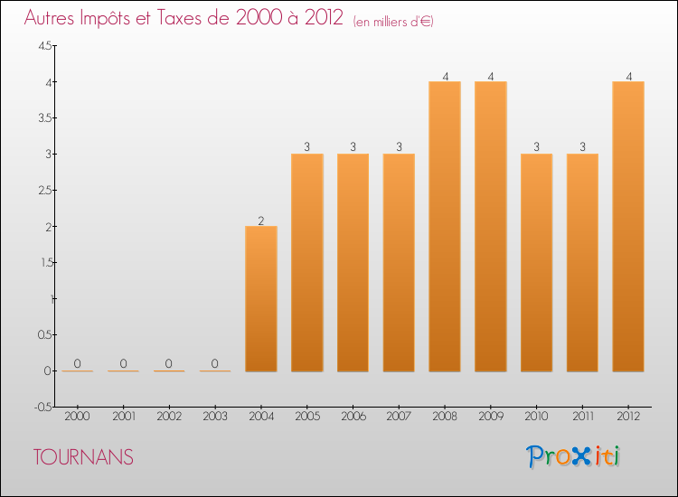 Evolution du résultat comptable pour TOURNANS de 2000 à 2012