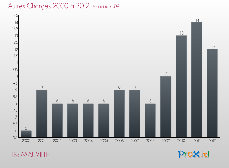 En 2012, les charges de fonctionnement de la commune de Trémauville étaient de : 45 000 € décomposées comme suit :