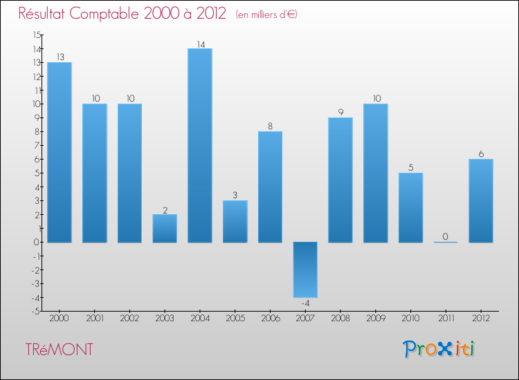 Le résultat comptable de la commune de Trémont s'établissait ainsi à : + 6 000 € fin 2012.