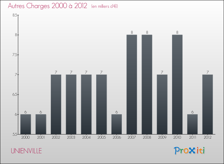 En 2012, les charges de fonctionnement de la commune de Unienville étaient de : 78 000 € décomposées comme suit :