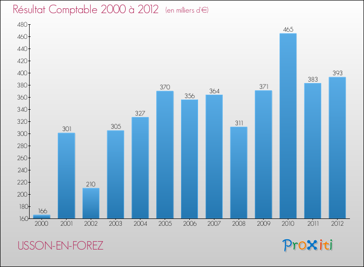 Le résultat comptable de la commune de Usson-en-Forez s'établissait ainsi à : + 393 000 € fin 2012.