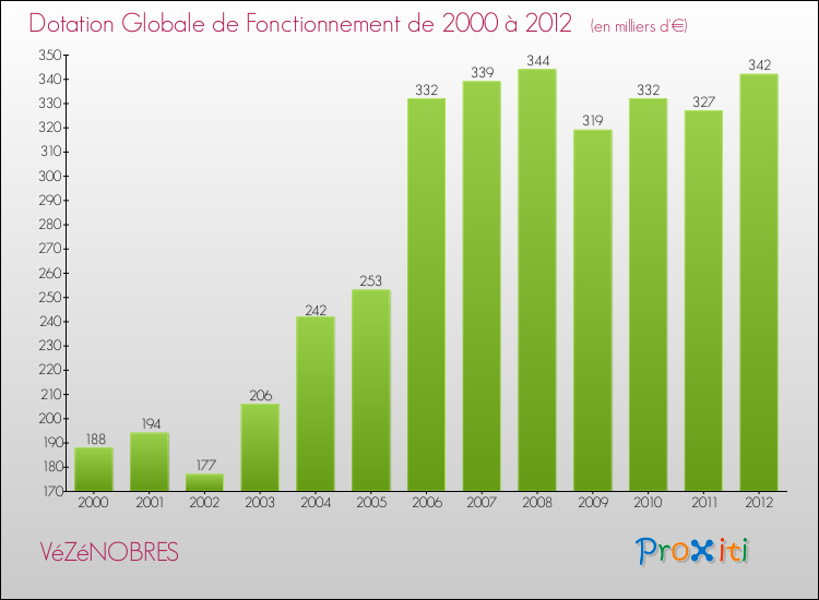 Le Résultat Comptable 2012 pour la commune de VéZéNOBRES