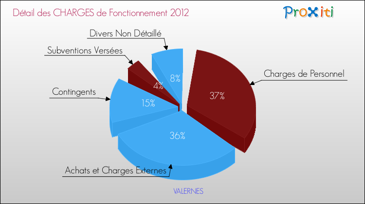 En 2012, les charges de fonctionnement de la commune de Valernes étaient de : 189 000 € décomposées comme suit :