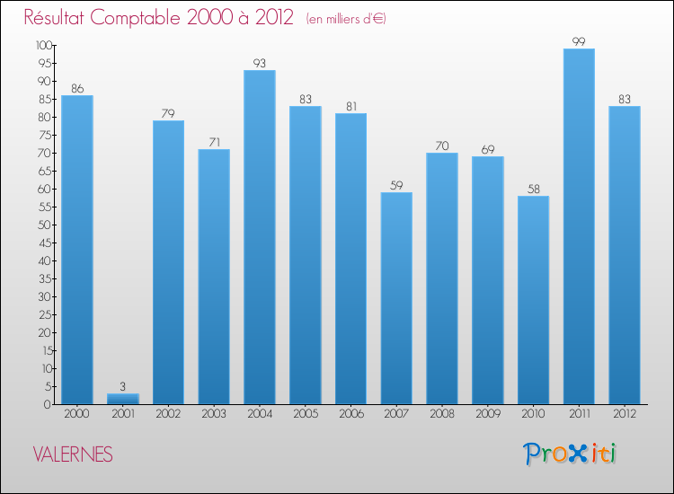 Le résultat comptable de la commune de Valernes s'établissait ainsi à : + 83 000 € fin 2012.