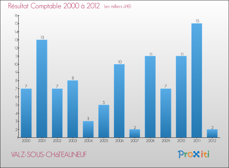 Evolution du résultat comptable pour VALZ-SOUS-CHâTEAUNEUF de 2000 à 2012