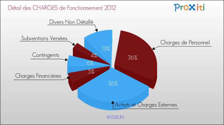 En 2012, les charges de fonctionnement de la commune de Vasselin étaient de : 171 000 € décomposées comme suit :
