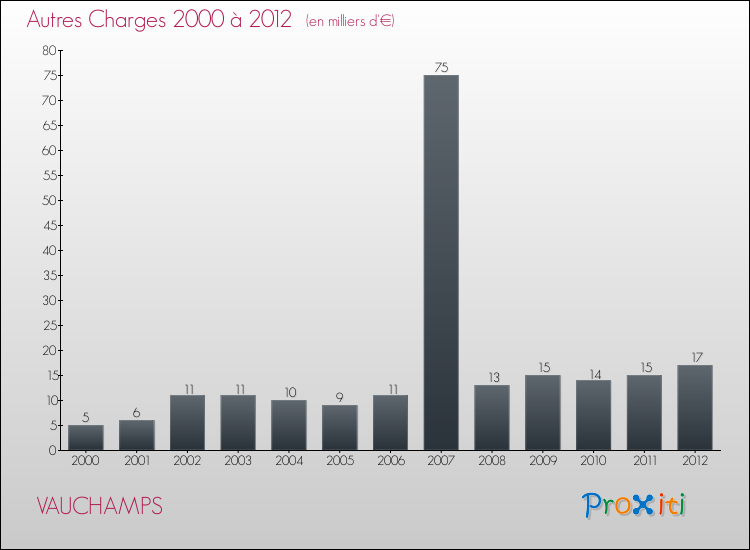 En 2012, les charges de fonctionnement de la commune de Vauchamps étaient de : 58 000 € décomposées comme suit :