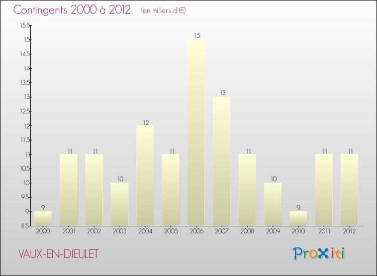 En 2012, le budget de fonctionnement de la commune de Vaux-en-Dieulet se montait à : 88 000 € décomposé comme suit :