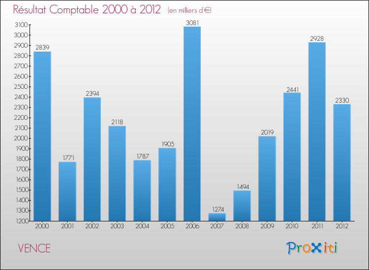 Le résultat comptable de la commune de Vence s'établissait ainsi à : + 2 330 000 € fin 2012.
