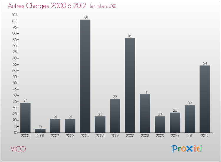 En 2012, les charges de fonctionnement de la commune de Vico étaient de : 950 000 € décomposées comme suit :