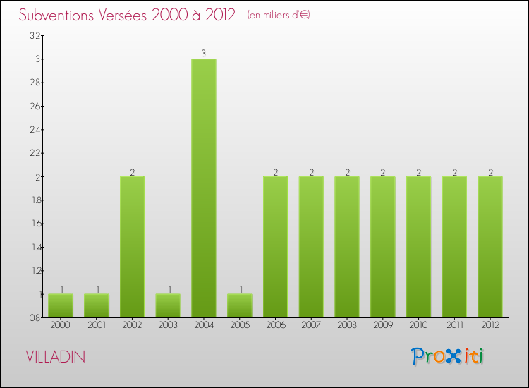 Le résultat comptable de la commune de Villadin s'établissait ainsi à : -13 000 € fin 2012 (recettes-dépenses).
