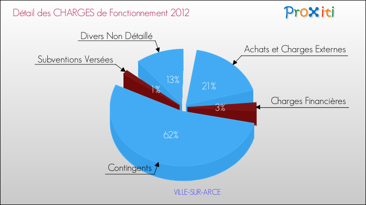 En 2012, les charges de fonctionnement de la commune de Ville-sur-Arce étaient de : 141 000 € décomposées comme suit :