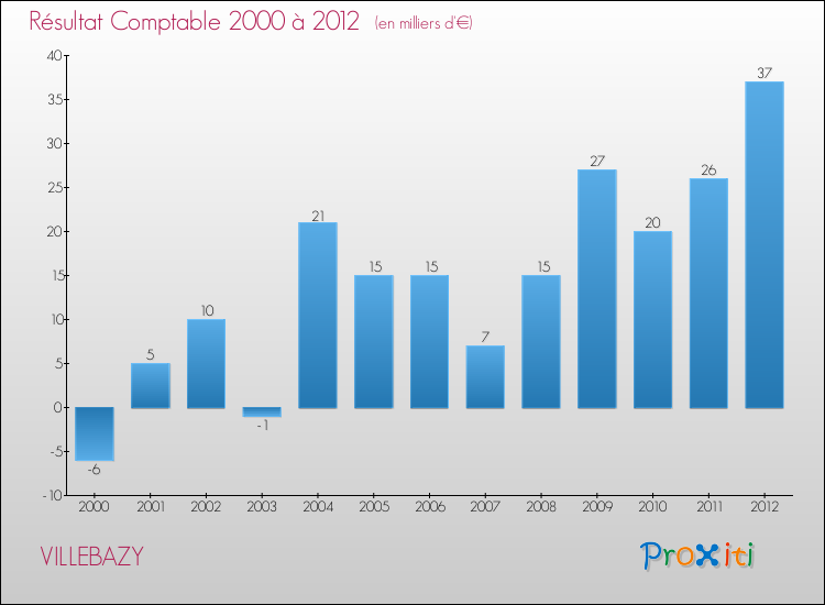 Le résultat comptable de la commune de Villebazy s'établissait ainsi à : + 37 000 € fin 2012.