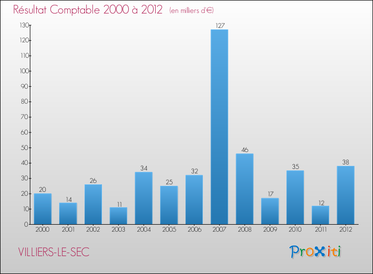 Le résultat comptable de la commune de Villiers-le-Sec s'établissait ainsi à : + 38 000 € fin 2012.