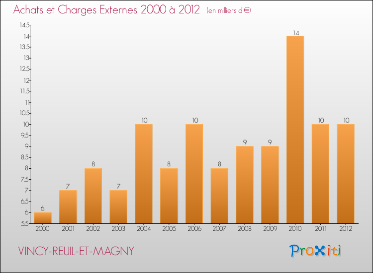 En 2012, le budget de fonctionnement de la commune de Vincy-Reuil-et-Magny se montait à : 56 000 € décomposé comme suit :