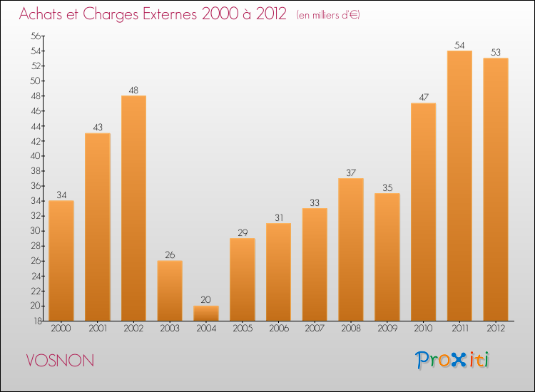 En 2012, les charges de fonctionnement de la commune de Vosnon étaient de : 122 000 € décomposées comme suit :