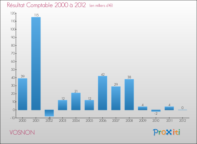 Le résultat comptable de la commune de Vosnon s'établissait ainsi à : + 0 € fin 2012.