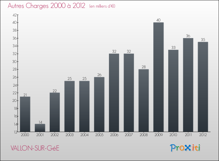 En 2012, les charges de fonctionnement de la commune de Vallon-sur-Gée étaient de : 333 000 € décomposées comme suit :