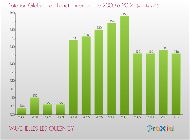 En 2012, le budget de fonctionnement de la commune de Vauchelles-les-Quesnoy se montait à : 636 000 € décomposé comme suit :