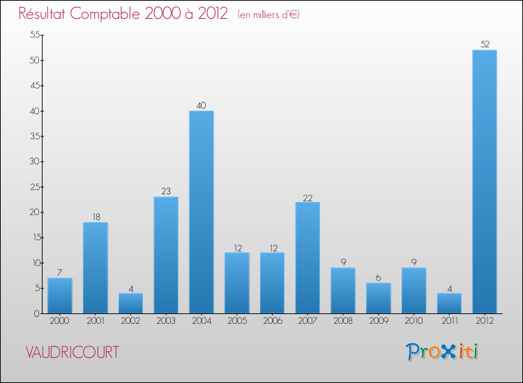 Le résultat comptable de la commune de Vaudricourt s'établissait ainsi à : + 52 000 € fin 2012.