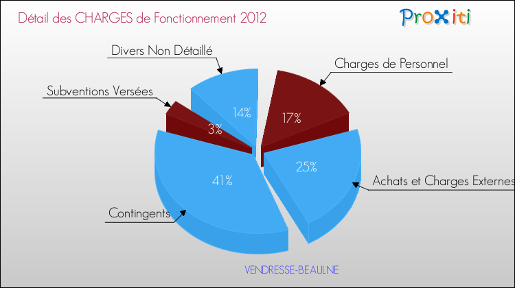 En 2012, les charges de fonctionnement de la commune de Vendresse-Beaulne étaient de : 59 000 € décomposées comme suit :