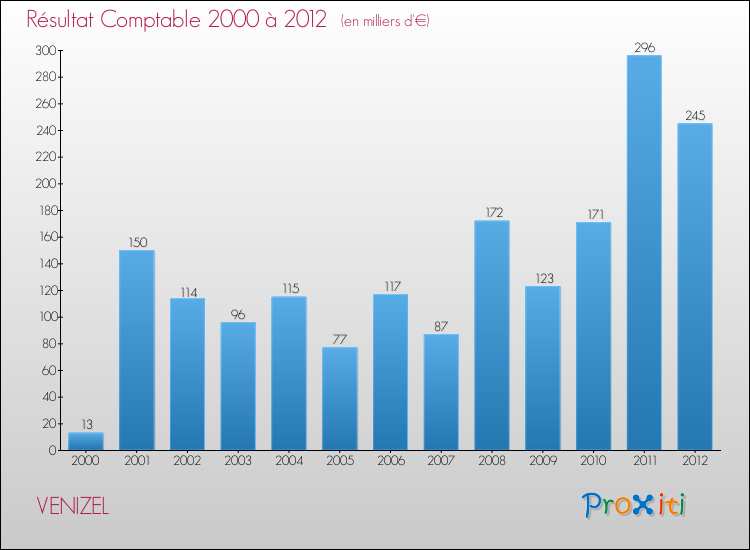 Le résultat comptable de la commune de Venizel s'établissait ainsi à : + 245 000 € fin 2012.