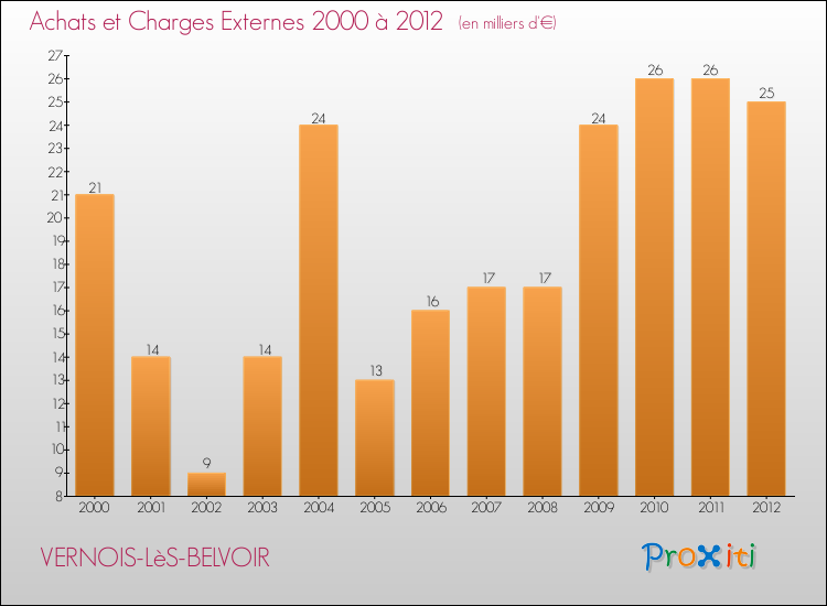 En 2012, les charges de fonctionnement de la commune de Vernois-lès-Belvoir étaient de : 53 000 € décomposées comme suit :