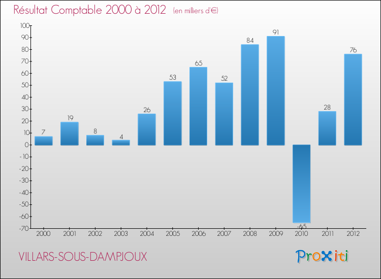 Le résultat comptable de la commune de Villars-sous-Dampjoux s'établissait ainsi à : + 76 000 € fin 2012.