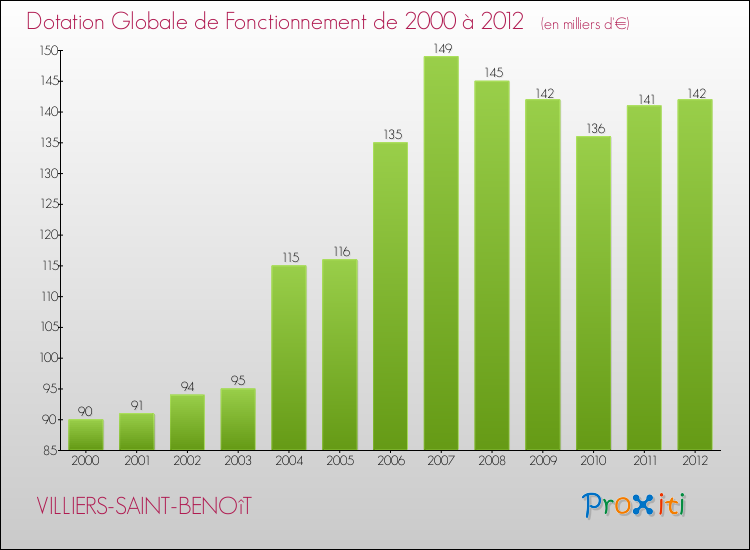 Le résultat comptable de la commune de Villiers-Saint-Benoît s'établissait ainsi à : + 92 000 € fin 2012.