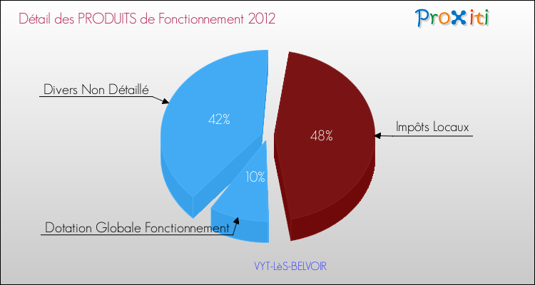 En 2012, le budget de fonctionnement de la commune de Vyt-lès-Belvoir se montait à : 272 000 € décomposé comme suit :